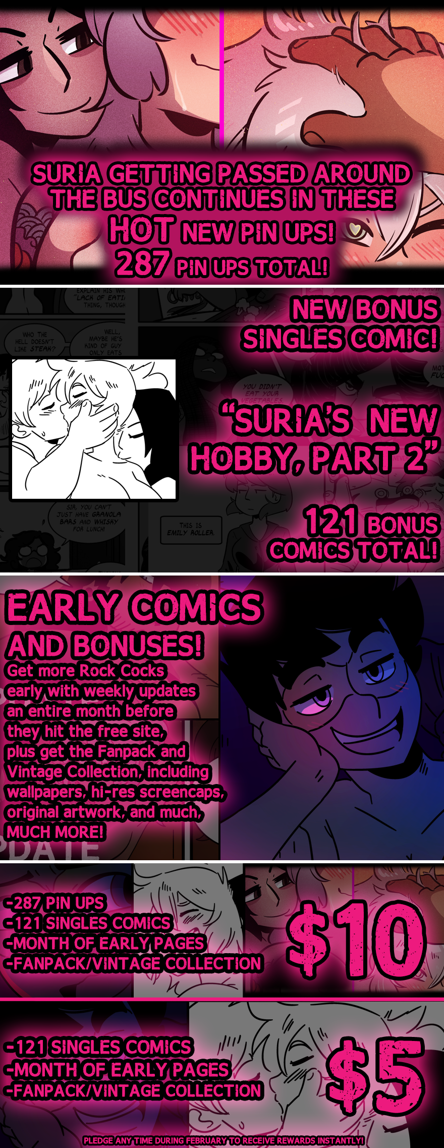 Want more Rock Cocks? Supporters can get hundreds of bonuses, including pin ups, early pages, bonus comics, PDFs, wallpapers, original artwork, and MUCH MORE EVERY MONTH! This comic is only made possible through our reader's support, so get tons of cool stuff for supporting us!